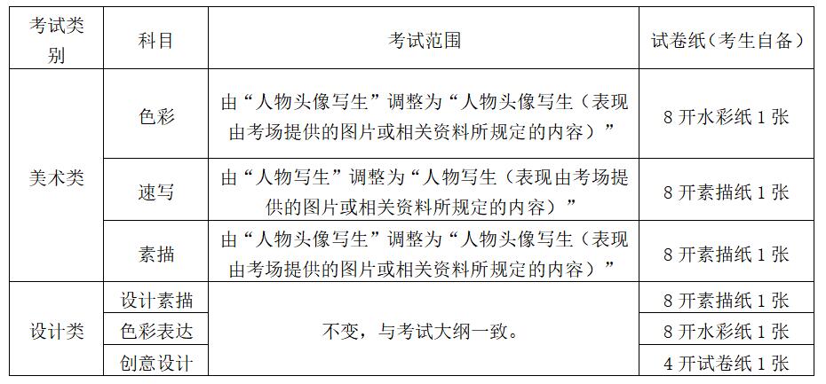 考试日期不变,即“美术类”3月12日、“设计类”3月13日,各考试科目具体时间调整如下: